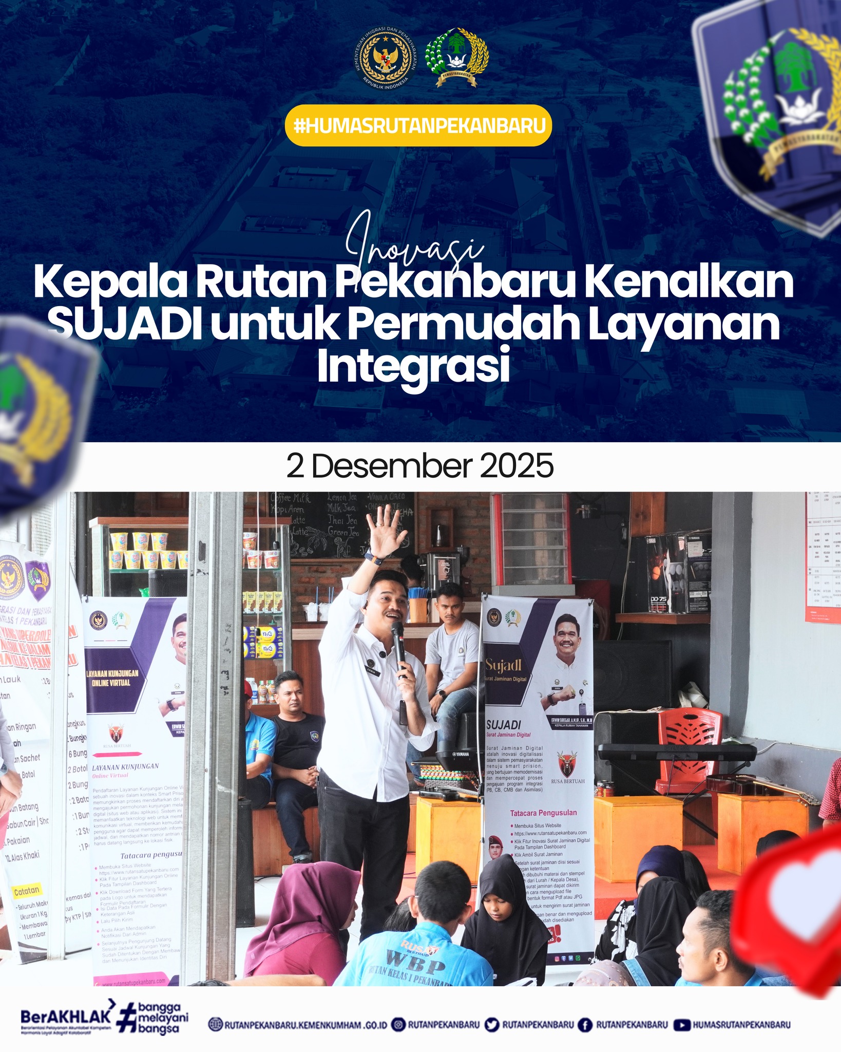 Pekanbaru – Kepala Rumah Tahanan Negara (Rutan) Kelas I Pekanbaru, Erwin Siregar, melaksanakan sosialisasi program SUJADI (Surat Jaminan Digital) kepada warga binaan serta keluarga warga binaan pada kegiatan kunjungan, sebagai […]